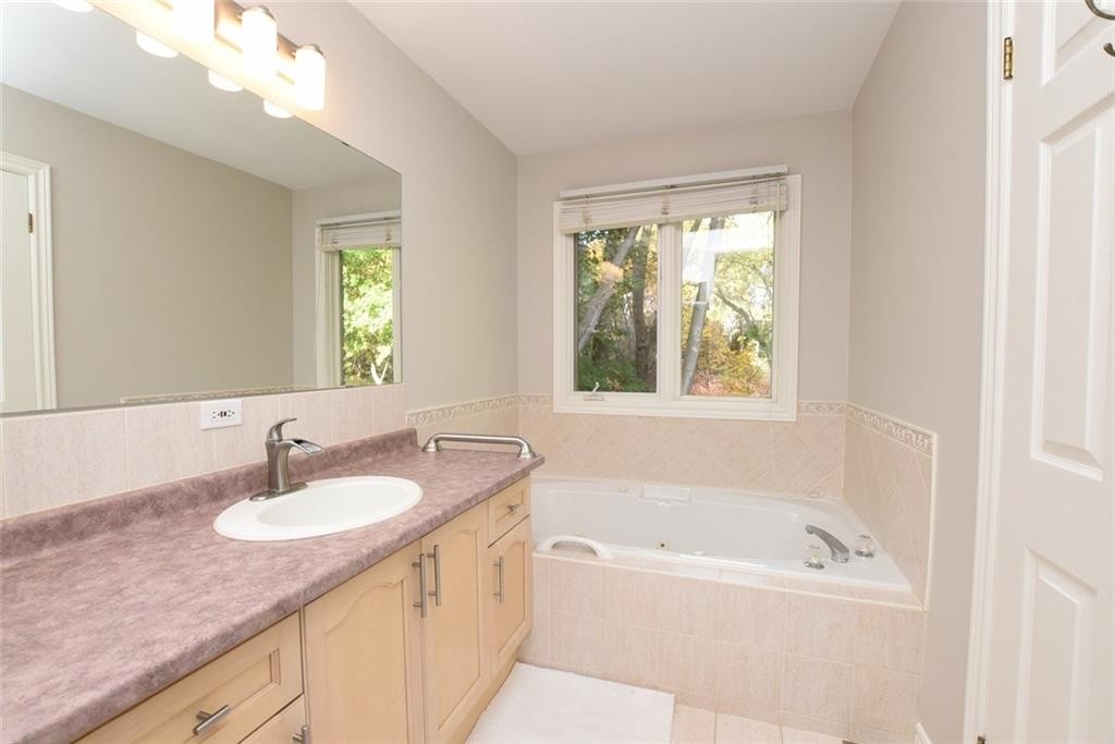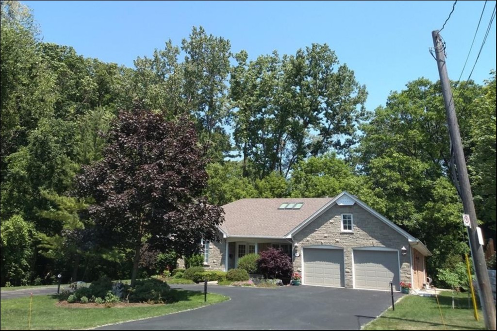 Fabulous Ravine Lot with view of Lake Ontario!! - This prestigious location & home has it all. Over 4000 sq ft of finished space featuring: spectacular views from every room, soaring vaulted ceilings, skylights, hardwood floors, great room w/gas fireplace, dining room, kitchen with island & granite counters, breakfast nook, main floor laundry, master bedroom overlooking the ravine with a walk-in closet, 4 piece en-suite w/ separate shower & jetted tub, 2 other good sized bedrooms & a 4 piece bath. Laundry & convenient direct access to the garage completes the main floor. The lower level is huge - NO carpet - & has 2 large bedrooms, a recreation rm, a games/multi purpose rm, & a 3 pce bath. This level also has 550 sq ft of unfinished space w/a full basement under the garage which is very unique. The basement foundation is supported with 2 by 6 construction & the house has a security & water filtration system, 200 amp electrical, a cold room & underground lawn sprinklers. You won’t be disappointed by the curb appeal with the beautiful landscaping & circular drive that can accommodate up to 9 vehicles in tandem. The back yard is stunning with a pond & patio overlooking the ravine & a gas hookup for BBQing. Although the garage is double attached, a 3rd vehicle can be parked tandem in the oversized garage which is another unique feature. You can enjoy watching the deer from this very peaceful property. It is a perfect place to call home.